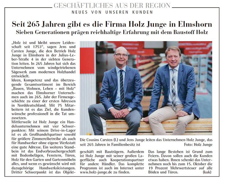 'Seit 265 Jahren gibt es die Firma Holz Junge in Elmshorn'